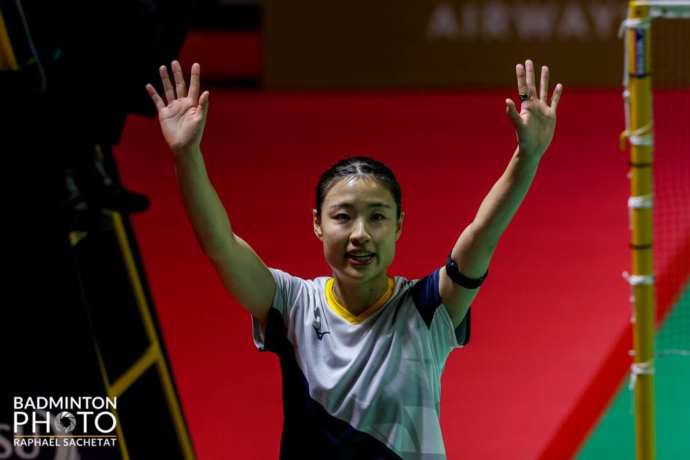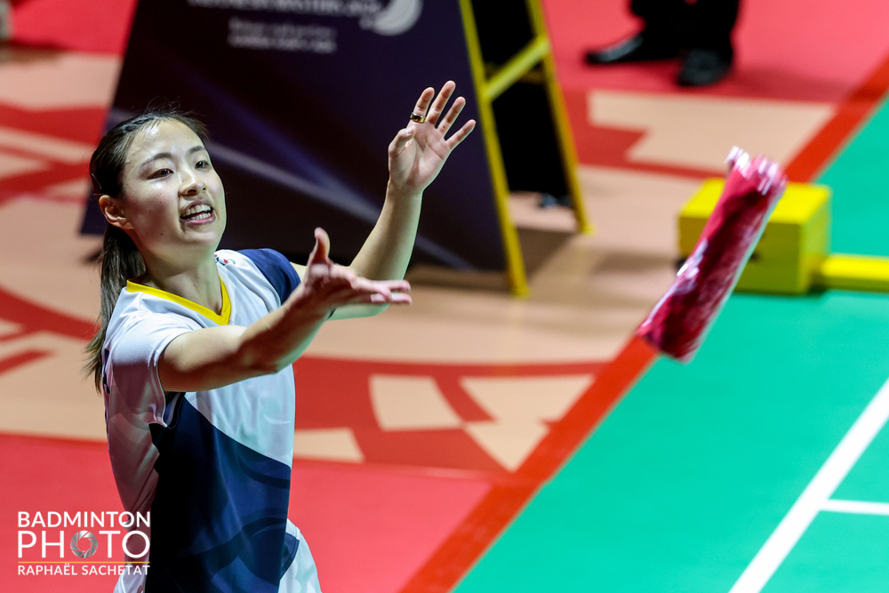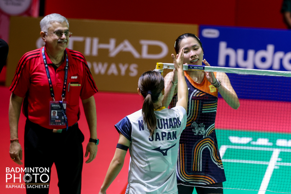 奥原希望(東京都バドミントン協会・27) (15−21、22−20)棄権 Ratchanok INTANON(タイ・6)